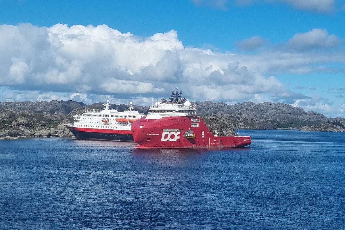 Η Hurtigruten είπε ότι το πλοίο υπέστη μόνο μικρές ζημιές στην “μπάλα” στην πλώρη του και στη πλωριά δεξαμενή έρματος ενώ δεν έχει αναφερθεί περιβαλλοντική ρύπανση.