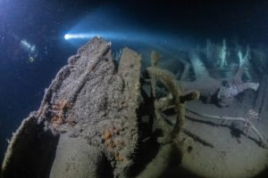 Προς μεγάλη έκπληξη, το πολεμικό πλοίο βρέθηκε σε εκπληκτικά καλή κατάσταση, αλλά χωρίς την πλώρη του, που ανατινάχτηκε όταν χτυπήθηκε από νάρκη…