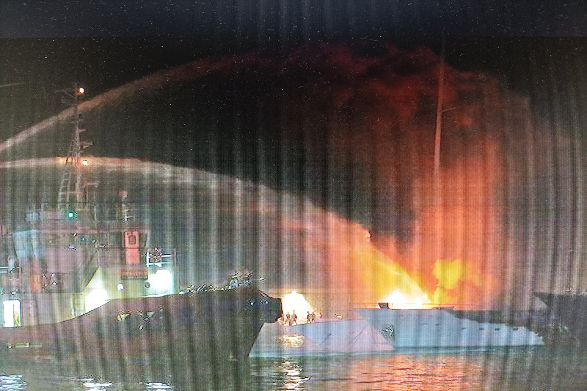 Τις βραδινές ώρες χθες, ενημερώθηκε το Ε’ Λιμενικό Τμήμα Ζέας του Κεντρικού Λιμεναρχείου Πειραιά για εκδήλωση πυρκαγιάς σε σκάφος στην προβλήτα «Α» του Τουριστικού λιμένα Ζέας. Στη περιοχή έσπευσαν στελέχη Λ.Σ.-ΕΛ.ΑΚΤ. με περιπολικό όχημα, όπου διαπίστωσαν ότι σε ένα (01) πρυμνοδετημένο επιβατικό – τουριστικό (Ε/Γ-Τ/Ρ) σκάφος σημαίας Μάλτας, είχε εκδηλωθεί μεγάλης έκτασης πυρκαγιά, η οποία επεκτάθηκε και σε τρία (03) παραπλεύρως σε αυτό ελλιμενισμένα Ε/Γ-Τ/Ρ σκάφη, δύο (02) σημαίας Μάλτας και ένα (01) σημαίας Αγγλίας. Αρχικά, έγιναν προσπάθειες κατάσβεσης από το προσωπικό του φορέα της Μαρίνα Ζέας Α.Ε., ενώ στη συνέχεια κατέφθασαν στο σημείο εννέα (09) οχήματα της Πυροσβεστική Υπηρεσίας (Π.Υ.), ένα (01) πλωτό σκάφος της Π.Υ. και τέσσερα (04) ρυμουλκά (Ρ/Κ) πλοία.